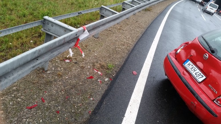 아침 출근길에 비가 부슬부슬 왔다. 항상 통행하던 37번 지역고속도로가 막히자, A7번 고속도로를 타고 A2 고속도로로 진입하던 중 빗길에 미끄러져 가드레일에 차량 뒷부분이 부딪혔다. 운전자인 나는 다친곳이 없고, 차량 뒷부분만 좀 찌그러졌을 뿐이다.